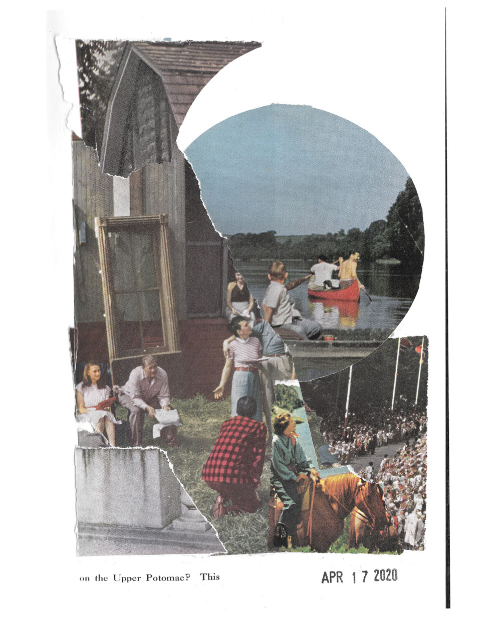 Six-layer reduction linocut (2020, above) based on an original collage by Ethan Krause.